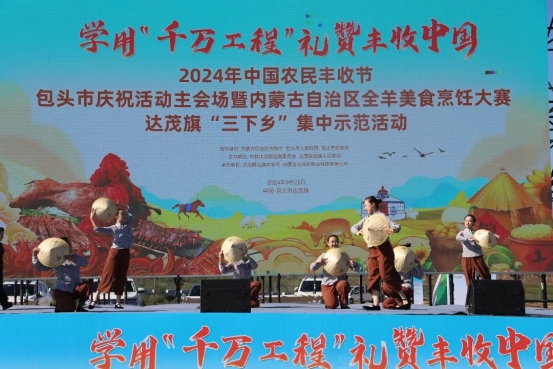 同時,作為2024 年中國農民豐收節(jié)包頭市慶?;顒又鲿?,廣大農牧民朋友也在達茂旗套馬溝田園綜合體共赴了一場關于土地與希望的“豐收之約”。烏蘭牧騎的歌舞表演;模范代表種植大王盧永旺、養(yǎng)馬能手其木德的經驗分享;別開生面的烤全羊開羊儀式 ;新時代農牧民科普宣講;金融助農宣傳;農牧民免費義診;充滿生活氣息的“村趣”運動會,整體活動展現(xiàn)出廣大農牧民的幸福生活和豐富的鄉(xiāng)村文化,贏得了現(xiàn)場觀眾陣陣掌聲和歡呼聲?! ?/p>