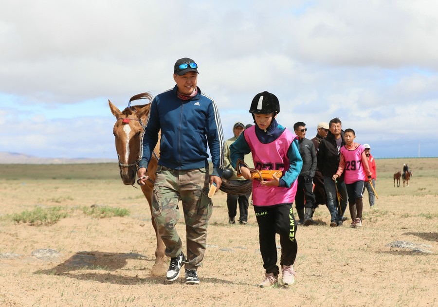 7月16日上午,內(nèi)蒙古自治區(qū)第34屆草原那達(dá)慕24公里賽馬,在錫林浩特希日塔拉草原舉行。來(lái)自蘇尼特右旗的13歲少年安琪爾,騎乘叔叔青格勒家的新6歲馬,在最后百余米沖刺階段,超越對(duì)手獲得冠軍。