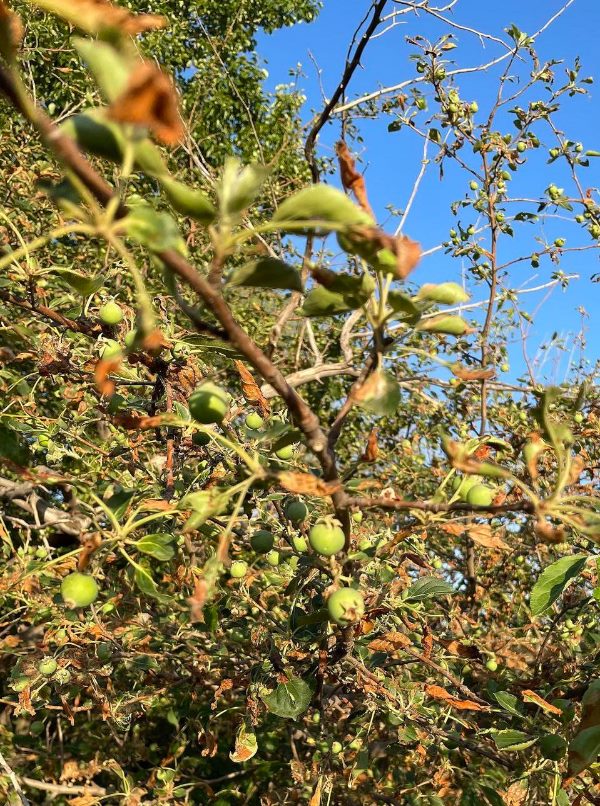 ??馮耀華當(dāng)年帶頭修起的大壩已廢棄,壩下無(wú)人料理的果樹卻還年年結(jié)果。今年又有不少綠色小沙果掛在枝頭。新華每日電訊記者王京雪攝