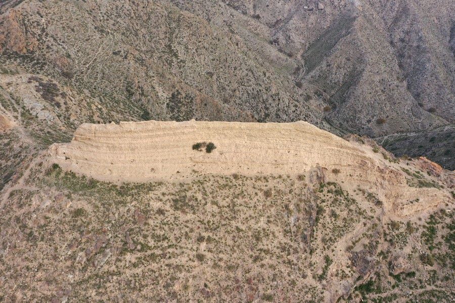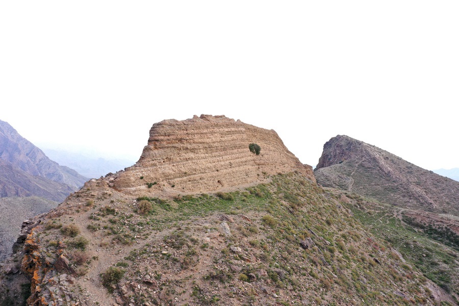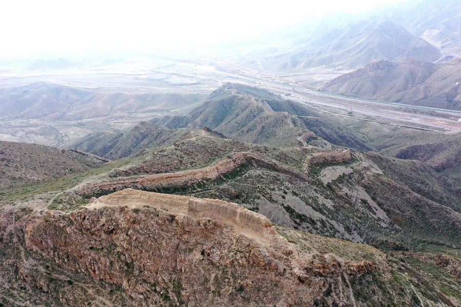 10月12日,從空中俯瞰內(nèi)蒙古與寧夏交界處的三關(guān)長城。