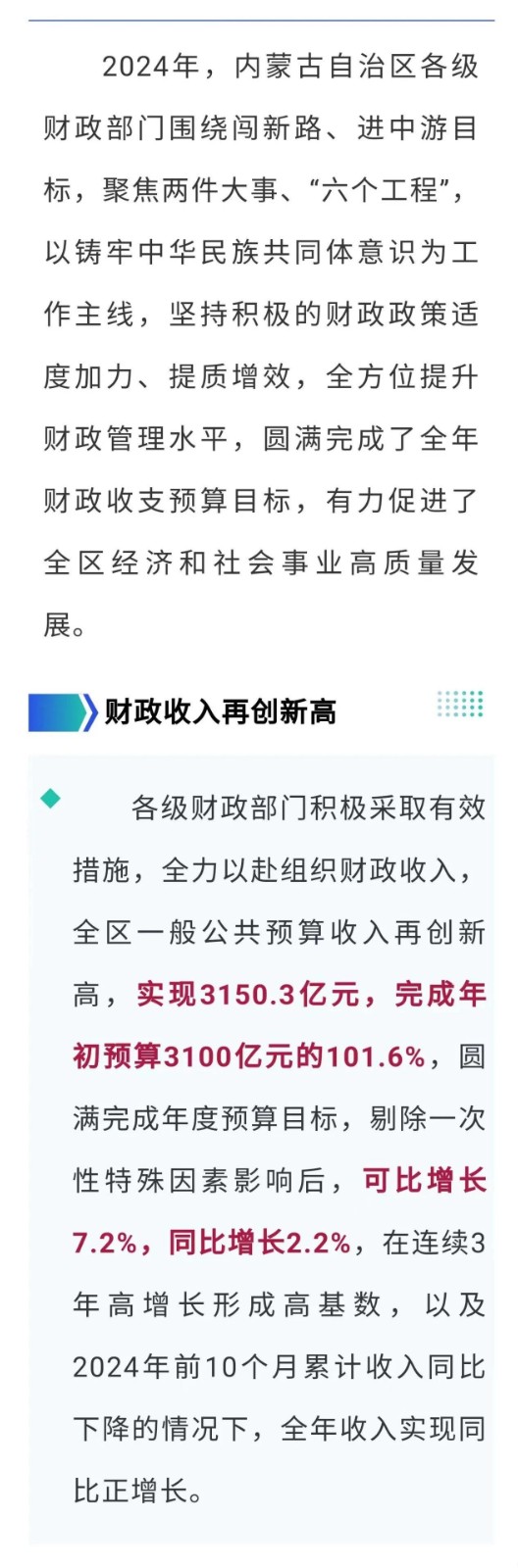2025年,全區(qū)各級財政部門將以習(xí)近平新時代中國特色社會主義思想為指導(dǎo),全面貫徹黨的二十大和二十屆二中、三中全會精神,按照自治區(qū)黨委和政府的決策部署,堅持以政領(lǐng)財、以財輔政,圍繞實施更加積極的財政政策,著力服務(wù)保障自治區(qū)大事要事,堅定不移推動貫穿“一條主線”、辦好兩件大事、完成“五大任務(wù)”、實施“六個工程”、開展“六個行動”落地落實,為奮力書寫中國式現(xiàn)代化內(nèi)蒙古新篇章貢獻(xiàn)財政力量。