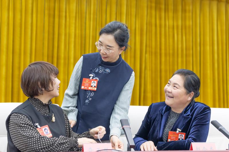 3月7日,全國人大代表胡海娟(左)建議,通過在各級學校設立專職家庭教育指導教師等舉措,強化家庭教育指導,推動家校社協(xié)同育人,促進青少年健康成長。記者 于濤 攝