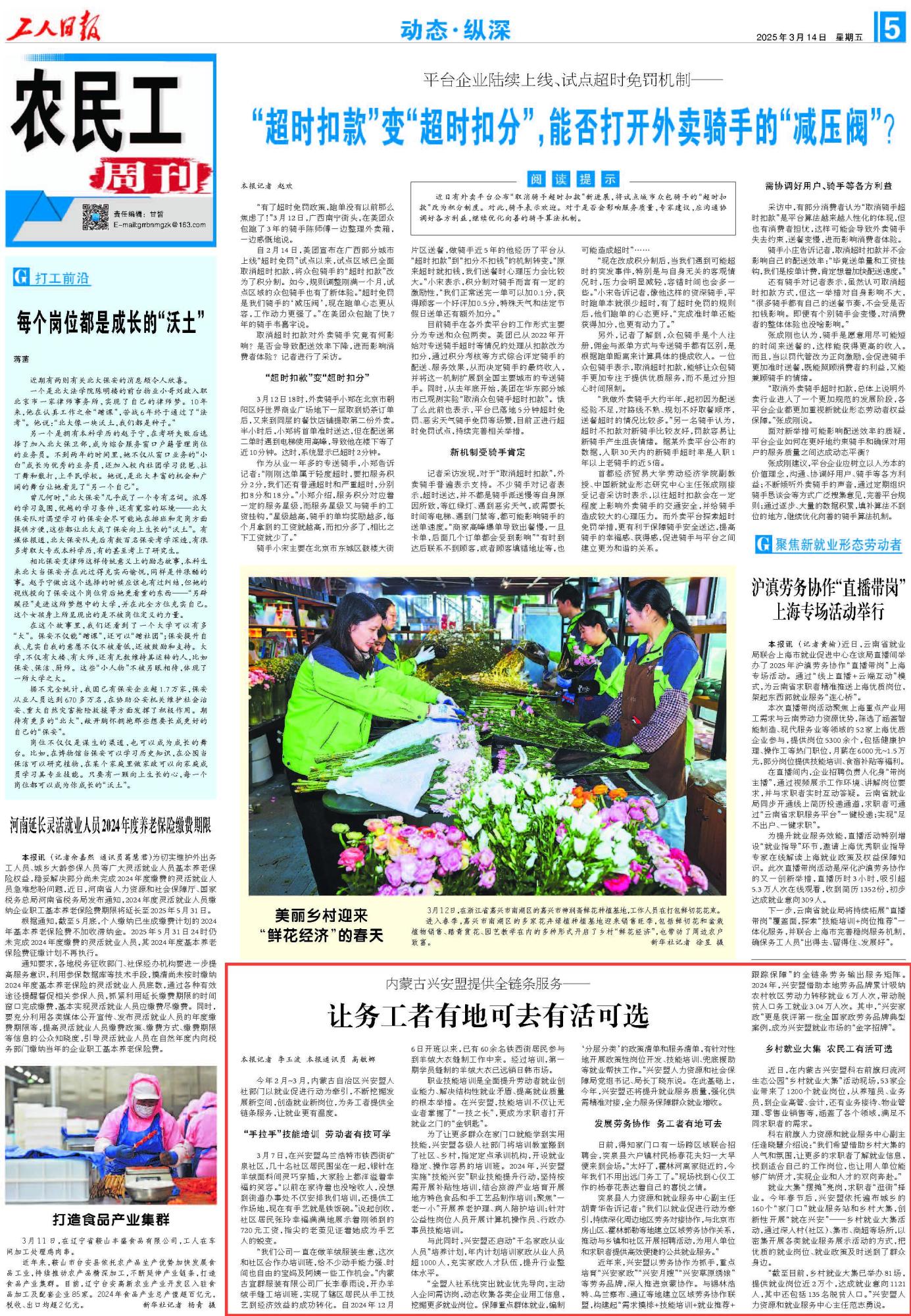 2025年3月14日《工人日報》第5版刊發(fā)了《內(nèi)蒙古興安盟提供全鏈條服務——讓務工者有地可去有活可選》的文章,報道了今年2月—3月,內(nèi)蒙古自治區(qū)興安盟人社部門以就業(yè)促進行動為牽引,不斷挖掘發(fā)展新空間,創(chuàng)造就業(yè)新崗位,為務工者提供全鏈條服務,讓就業(yè)更有溫度。