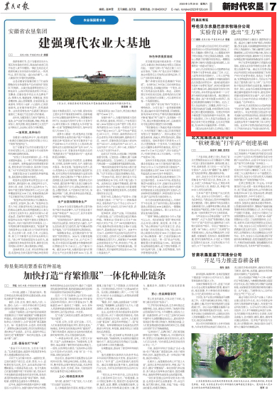 2025年3月29日,《農(nóng)民日?qǐng)?bào)》第7版刊發(fā)題為《呼倫貝爾農(nóng)墾巴彥農(nóng)牧場分公司實(shí)驗(yàn)育良種 選出“生力軍”》的文章,報(bào)道了近年來,巴彥農(nóng)牧場分公司始終堅(jiān)持“科技興農(nóng)”戰(zhàn)略,不斷加大在農(nóng)業(yè)科研方面的投入。農(nóng)業(yè)科技園區(qū)實(shí)驗(yàn)室作為技術(shù)創(chuàng)新與應(yīng)用的前沿陣地,承擔(dān)著多項(xiàng)重要的科研任務(wù),在種子培育、土壤改良、病蟲害防治等多個(gè)領(lǐng)域開展了深入研究與實(shí)踐。
