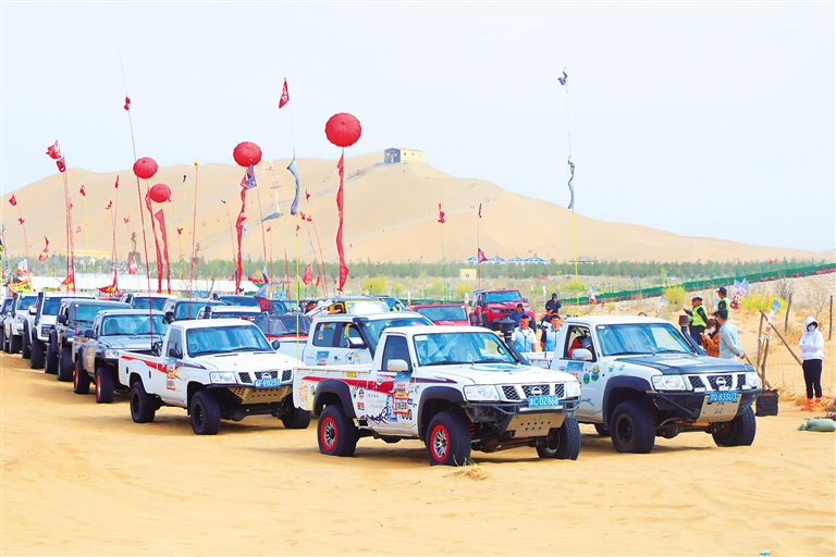 上午10時(shí)20分,第一組參賽的越野賽車如脫韁之馬,奔騰而出,在沙漠中穿梭馳騁,展現(xiàn)出車手的精湛駕駛技藝和無畏的勇氣。