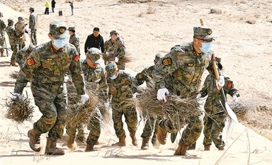 2025年5月6日《中國國防報》第1版刊發(fā)了《內蒙古巴彥淖爾軍分區(qū)發(fā)動民兵參與烏蘭布和沙漠治沙攻堅戰(zhàn) 植樹造林戰(zhàn)“黃龍”》的文章,報道了連日來,內蒙古巴彥淖爾市民兵到烏蘭布和沙漠植樹造林。為植樹造林鎖住“黃龍”,當地軍民聯手筑起了一道48公里長的綠色屏障。據氣象部門數據顯示,近年來,當地沙塵暴、干熱風、浮塵天氣年平均日數顯著下降。