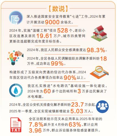 2024年,全區(qū)各級人民調(diào)解組織共調(diào)解矛盾糾紛18萬件、成功率達(dá)99%。全區(qū)信訪代辦各類事項(xiàng)辦結(jié)率達(dá)90%以上,一大批群眾急難愁盼事項(xiàng)得到及時(shí)就地解決。