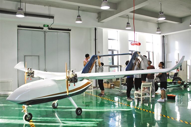 “新研發(fā)的LY—29聯(lián)接翼垂直起降無人機可以同時具備垂直起飛和降落功能,不需要跑道,可滿足大范圍的復(fù)雜的起降場地需求?!焙艉秃铺厥鞋F(xiàn)代信息技術(shù)學校校長助理夏季風邊說邊展示。只見無人機將前翼與位于后上方的后翼端口相互連接,在只有3米直徑的區(qū)域內(nèi),垂直起飛并以高速水平飛行,完成巡航后,便垂直降落。