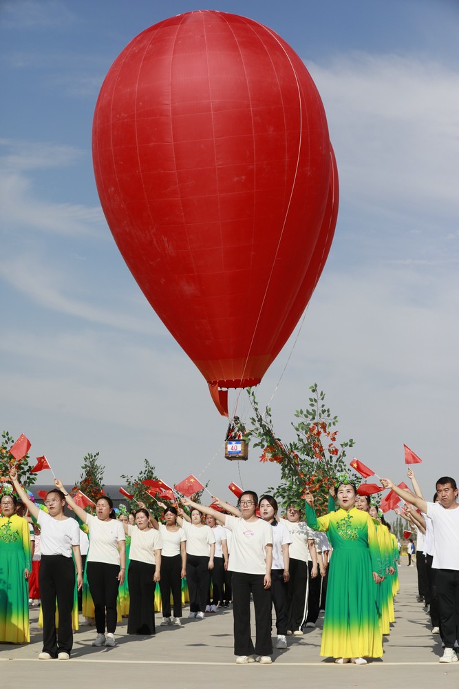 據(jù)介紹,此次全國熱氣球挑戰(zhàn)賽除賽事類活動外,還將開展熱氣球探秘計劃?系留飛行體驗、守護母親河?環(huán)?;厥站G洲行動、重走英雄路?熱氣球“渡?陰山”等活動。開幕式現(xiàn)場,特技表演、空中婚禮、噴火巡游輪番上演,盡顯磴口浪漫風情。