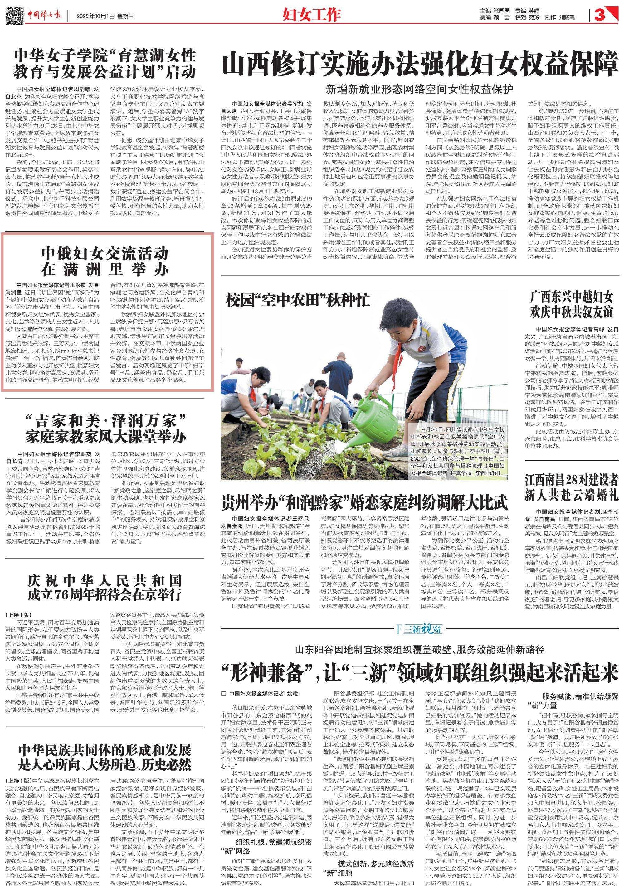 2025年10月1日《中國婦女報(bào)》第3版