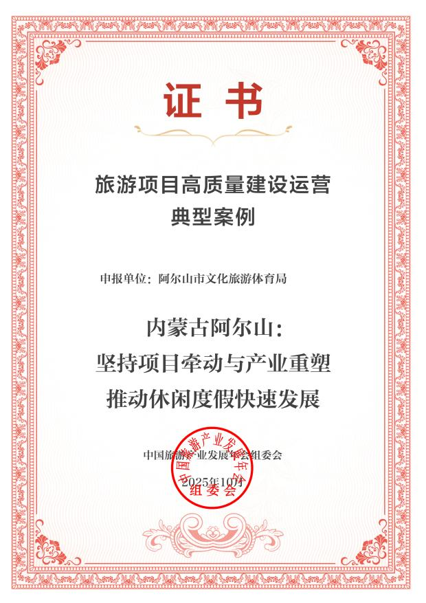 阿爾山市“堅持項目牽動與產業(yè)重塑推動休閑度假快速發(fā)展”案例成功入選2025旅游項目高質量建設運營典型案例。