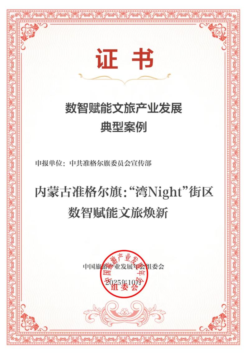 準格爾旗“‘灣Night’街區(qū)數(shù)智賦能文旅煥新”案例成功入選2025數(shù)智賦能文旅產業(yè)發(fā)展典型案例。