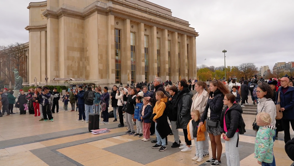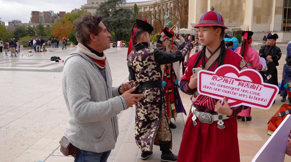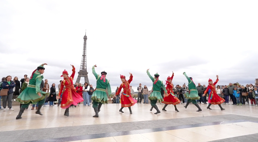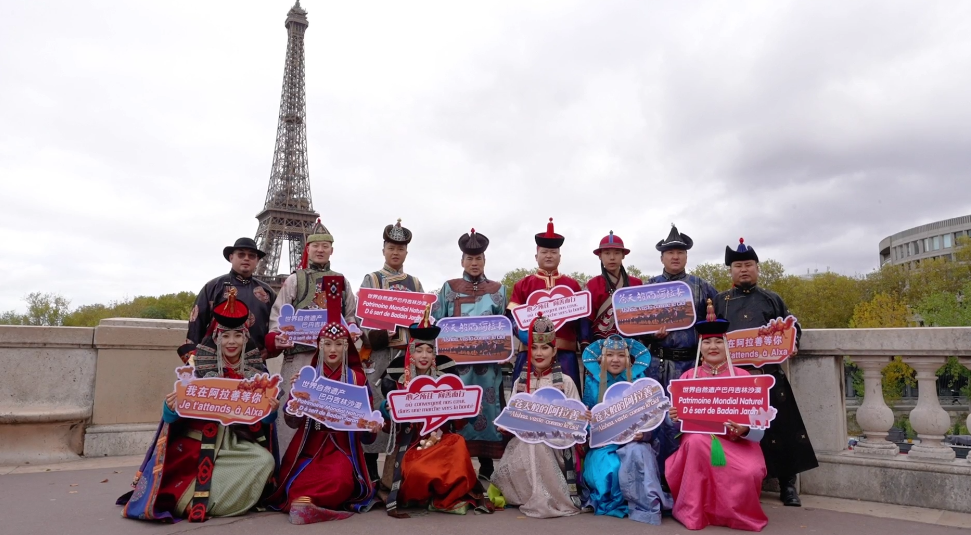 在法國巴黎市的夏約宮廣場、埃菲爾鐵塔、香榭麗舍大街、巴黎圣母院、凱旋門、國際大學(xué)城,比利時(shí)布魯塞爾市大廣場、藝術(shù)山等地,阿拉善的烏蘭牧騎演員開啟了一場場融合蒙古族華服走秀與快閃歌舞表演,“阿拉善在哪里?”“這服裝太酷了!”“怎么有萬馬奔騰的感覺!”“想去看一看!”“這沙漠也太壯觀了!”快閃路演吸引了法國、比利時(shí)以及來自世界各地的游客駐足觀看,喝彩不斷,沉醉其中。