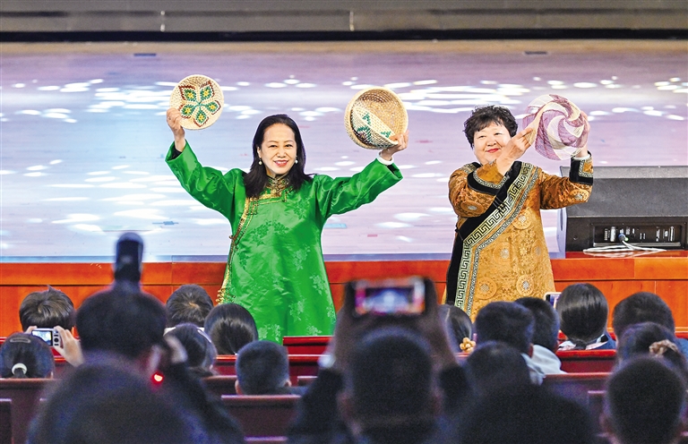 對接會設在北京一零一中學圓明園校區(qū),現(xiàn)場,內蒙古特色非遺、歌舞表演異彩紛呈,鮮活展現(xiàn)絢爛多彩的北疆文化。北京交通大學現(xiàn)代旅游研究學院院長張輝作“研學旅游高質量發(fā)展”主旨演講。自治區(qū)文旅廳發(fā)布了2025年研學旅游新品,重磅推出深度融合內蒙古的自然地理、歷史文化、科學技術與民族風情的4條主線、20條支線的研學旅行路線,還系統(tǒng)推出一批具有地域特色與文化內涵的精品主題研學旅游產品,全方位展示了內蒙古研學旅游的獨特魅力和發(fā)展?jié)摿?。內蒙古藝術劇院烏蘭恰特藝術培訓中心推介了北疆文化藝術研學產品;中國鐵路呼和浩特局發(fā)布京蒙研學旅游專列計劃,并進行京蒙兩地研學公司客源互通簽約儀式;中國旅游協(xié)會研學旅行分會與內蒙古自治區(qū)旅游協(xié)會進行合作簽約?;顒舆€設置“少年那達慕”互動體驗,吸引不少青少年現(xiàn)場打卡體驗北疆文化?!皟让晒攀且粋€自然與人文交織的遼闊課堂,期待走進內蒙古,用腳步丈量、用心靈感受內蒙古?!北本┙逃龑W院豐臺分院附屬學校學生高晟恩說。