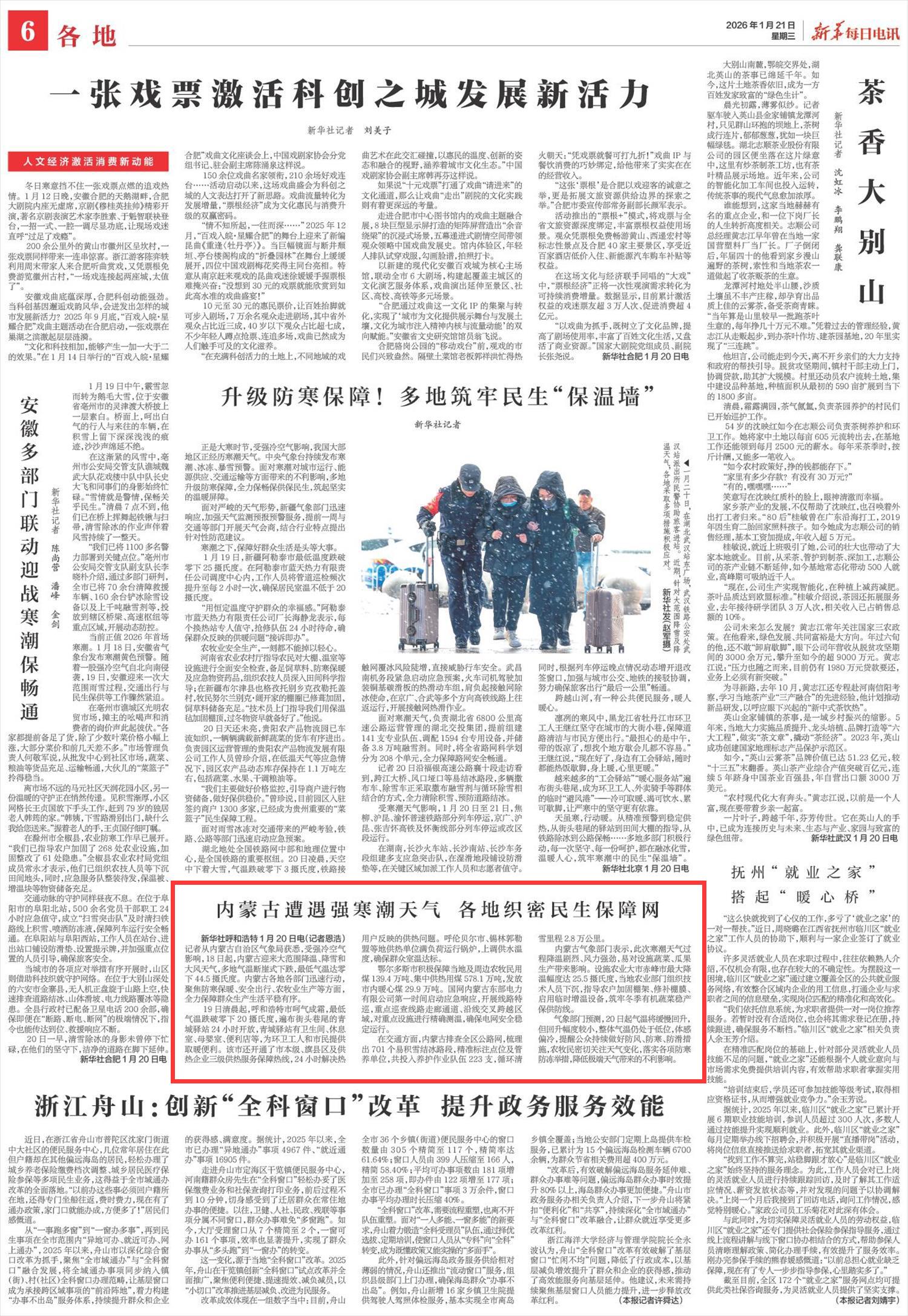 2026年1月21日《新華每日電訊》第6版刊發(fā)了《內(nèi)蒙古遭遇強(qiáng)寒潮天氣 各地織密民生保障網(wǎng)》的文章,報(bào)道了內(nèi)蒙古迎來大范圍降溫、降雪和大風(fēng)天氣,多地氣溫?cái)嘌率较碌?,最低氣溫達(dá)零下44.5攝氏度。各地各部門迅速行動(dòng),聚焦防寒保暖、安全出行、農(nóng)牧業(yè)生產(chǎn)等方面,全力保障群眾生產(chǎn)生活平穩(wěn)有序。