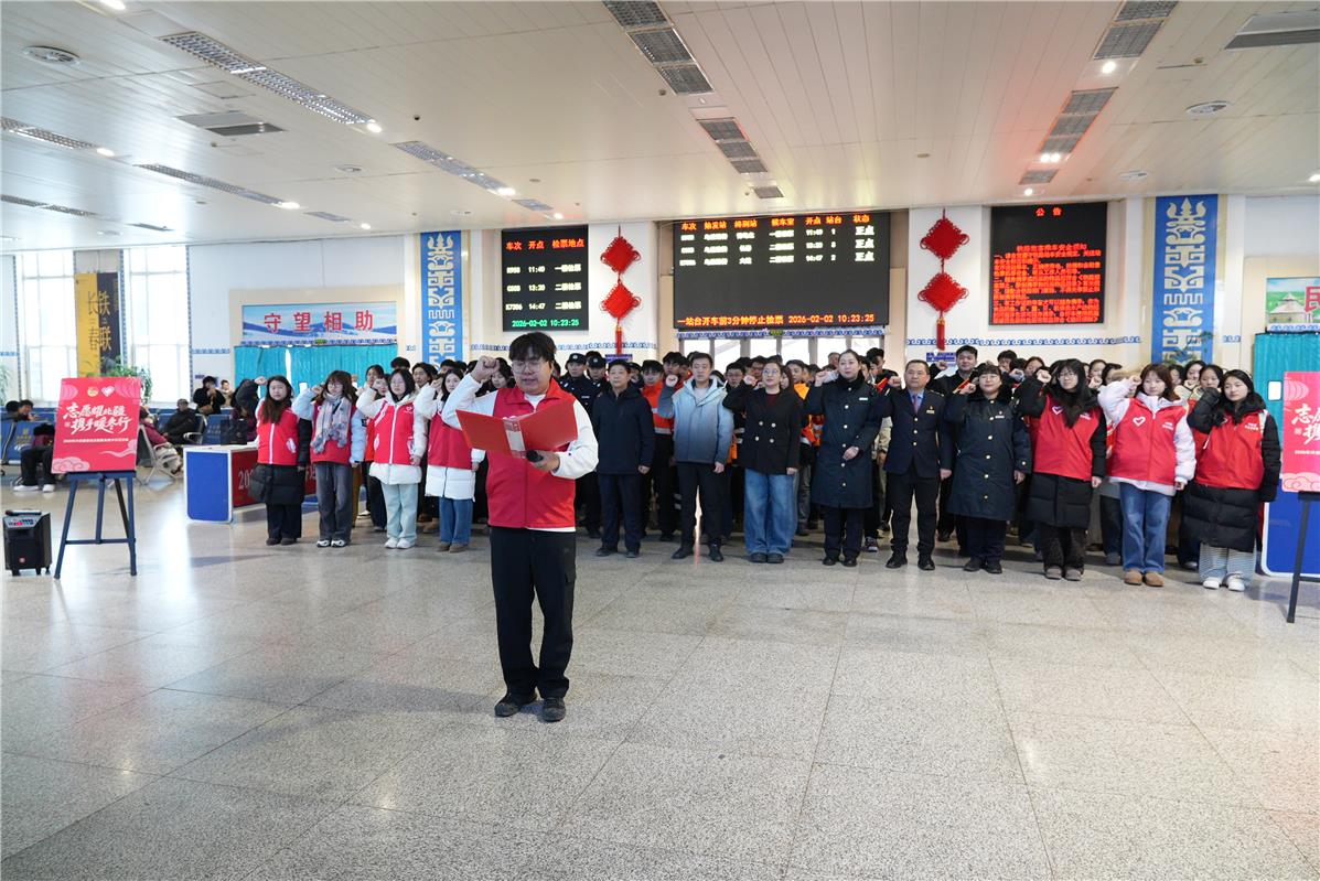 “阿姨您慢點,檢票口在二樓,行李我來幫您拎?!?9歲的杜鐵毅快步上前,穩(wěn)穩(wěn)接過老年旅客手中沉甸甸的編織袋。連日值守讓他的聲音帶著一絲忙碌后的沙啞,眼里的熱忱卻絲毫未減。作為興安盟向陽環(huán)保青年志愿者協(xié)會會長,這個春節(jié),他和志愿者們幾乎天天“泡”在車站,從進(jìn)站引導(dǎo)、行李搬運到車次咨詢、換乘指引,用周到細(xì)致的服務(wù),為奔波的歸途人送上新春里最真切的暖意。