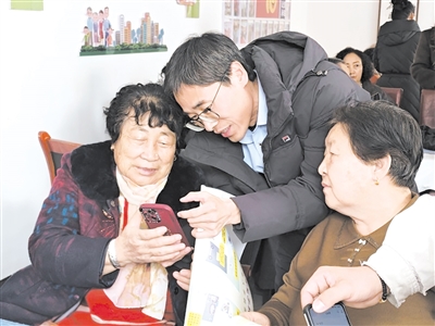 教老年人使用智能手機(jī)APP。(固陽縣委組織部供圖)