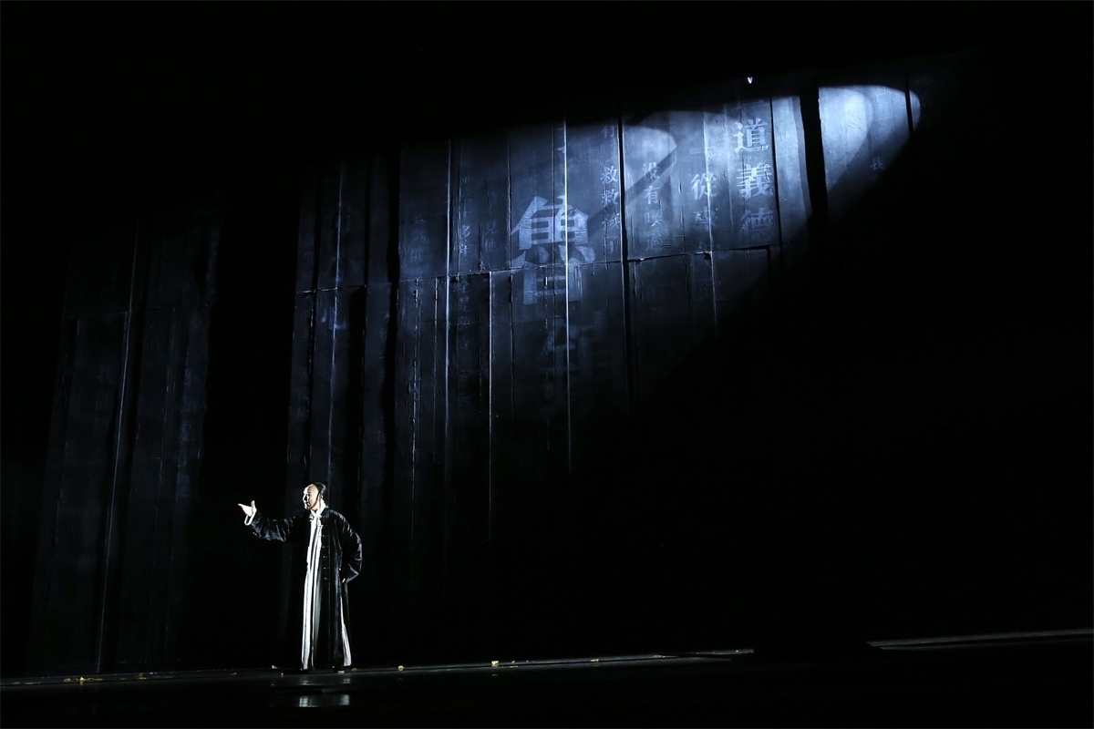 人民網(wǎng)北京5月6日電 (記者劉微)當(dāng)魯迅的《狂人日記》《祝?!贰犊滓壹骸返茸髌窛饪s在一起,熟悉的祥林嫂、阿Q等人物在一個(gè)全新的藝術(shù)空間進(jìn)行時(shí)空對(duì)話是怎樣的場(chǎng)景?5月5日,由河南省曲劇藝術(shù)保護(hù)傳承中心創(chuàng)排的大型原創(chuàng)曲劇《魯鎮(zhèn)》在北京國(guó)家大劇院上演。