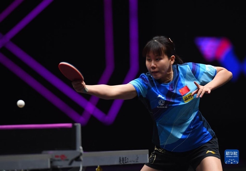 2023年4月11日,陳幸同在比賽中回球。當(dāng)日,在河南新鄉(xiāng)舉行的世界乒乓球職業(yè)大聯(lián)盟(WTT)新鄉(xiāng)冠軍賽女單首輪比賽中,中國(guó)選手陳幸同以3比0戰(zhàn)勝日本選手木原美悠,晉級(jí)十六強(qiáng)。新華社記者 郝源攝