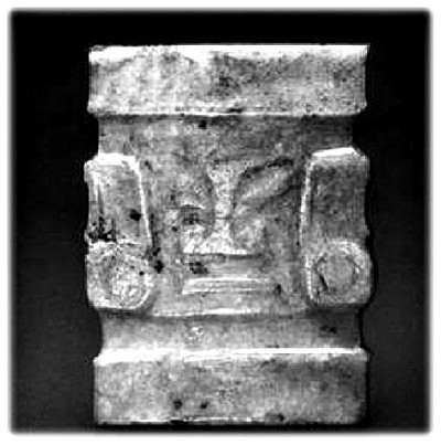 這里我再提供一張照片給大家參考,這是之前提到的湖南孫家崗,那里出土的玉人(圖2)。它跟我們介紹的石家河的玉人的造型幾乎是一樣的,也有冠和一對(duì)鳥(一只斷裂),只不過它的造型更加夸張,眼睛更加凸顯,獠牙上下都有,它表達(dá)的意思也是一樣的。這個(gè)玉人出現(xiàn)的年代大約是4000年前,推測(cè)那時(shí)已經(jīng)進(jìn)入夏的紀(jì)年。