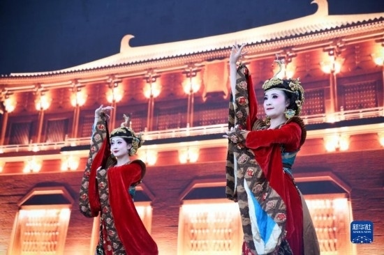 5月22日晚,舞蹈演員在2023陜西“博物館與美好生活”文博之夜活動(dòng)上表演唐樂(lè)舞大曲《團(tuán)亂旋》。