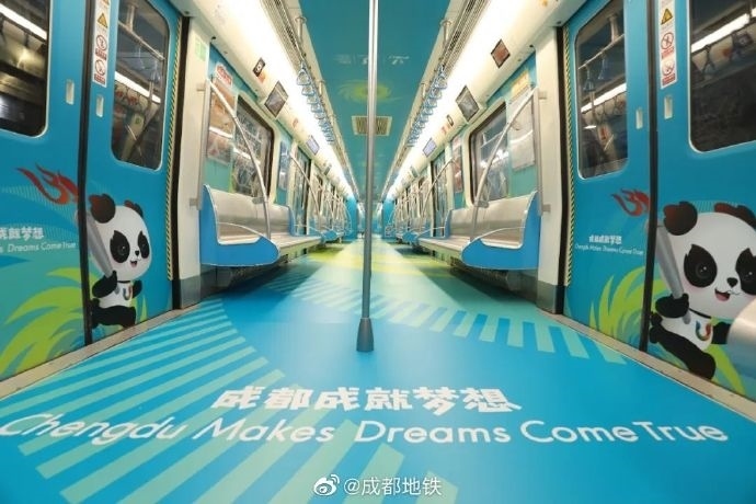 成都地鐵大運(yùn)會(huì)主題列車(chē)。圖片來(lái)源:成都地鐵官方微博