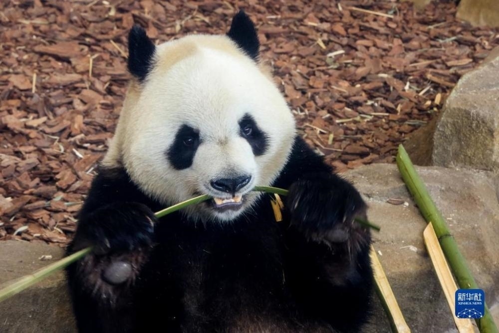 2023年4月24日,在成都大熊貓繁育研究基地,成都大運(yùn)會(huì)吉祥物“蓉寶”原型大熊貓“芝麻”迎來(lái)了六周歲生日。新華社發(fā)(陳居偉攝)