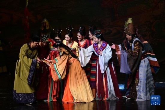 5月24日晚,國家藝術(shù)基金2022年度舞臺藝術(shù)創(chuàng)作立項(xiàng)資助項(xiàng)目——大型藏戲《金城公主》在青海省西寧市首演。劇目以唐朝第二位入藏公主金城公主遠(yuǎn)嫁吐蕃事件為歷史背景,講述了金城公主入藏前后顧全大局,用智慧、忍耐克服困難,化解矛盾,堅(jiān)固唐蕃友誼,促進(jìn)民族團(tuán)結(jié),贏得愛戴和敬仰的故事。
