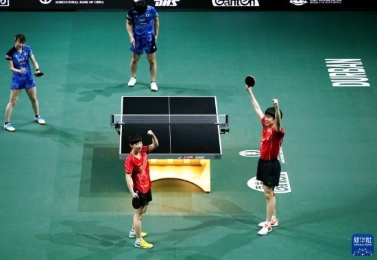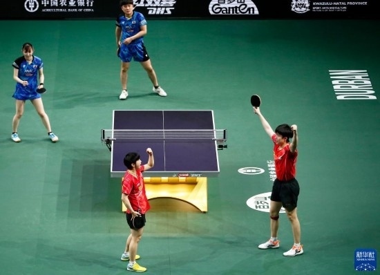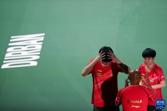 當日,2023年世界乒乓球錦標賽混合雙打頒獎儀式在南非德班舉行。中國組合王楚欽/孫穎莎以3比0戰(zhàn)勝日本組合張本智和/早田希娜,奪得冠軍。