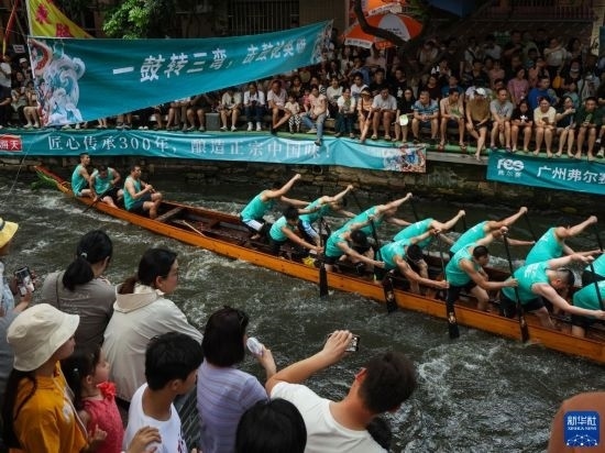 6月22日,觀眾在佛山疊滘東勝村觀看龍船漂移賽。