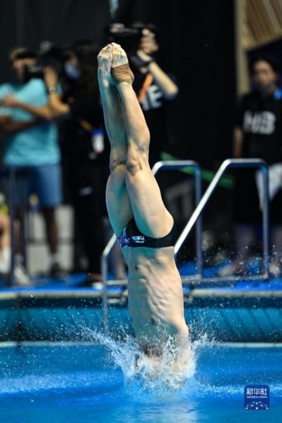 7月18日,中國選手掌敏潔在單人十米臺比賽中。