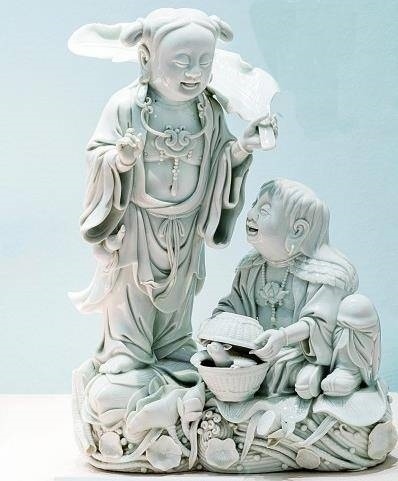 展覽第一單元“泥根玉雪元無染”,從“君子如蓮”的角度去解讀儒家文化中的蓮荷意象。先秦時期,蓮花成為儒家的“比德”之花,象征士大夫的芳潔之志,是“花中君子”人格意象的起點。屈原以“蓮花”寄托高潔志向,使其具有人格特征。漢代人們視蓮花為祥瑞。唐代文人賦予“白蓮”清凈不染的品性,使其“君子之義”進一步顯現(xiàn)。宋代大儒周敦頤一生為官廉潔奉公,施澤于民,并以名篇《愛蓮說》定格了蓮花“中通外直”“亭亭凈植”的清廉君子意象和文人節(jié)操。第二單元“蓮花影里數(shù)樓臺”,從“花開見佛”“以蓮喻道”去闡釋佛道,以蓮花之潔凈比喻出于世間而清凈無染的品質(zhì),賦予蓮荷光明、美好、高尚和圣潔的意象。第三單元“映日荷花別樣紅”,從“和和美美”“福壽永年”“荷風滿堂”的角度展示了世俗文化影響下與蓮有關(guān)的吉祥圖形和詞語。明清時期,民間因“荷”“和”諧音,以及蓮荷文化蘊含的“以和為貴”的理念,將蓮荷作為愛情幸福、婚姻美滿、多子昌盛、生活富裕、生生不息等涵義的吉祥物,和諧、和睦、和合的“蓮荷意象”得以確立。蓮荷在中國園林中更是“點睛之筆”,賞荷、詠詩、品酒,是園林生活中的盛事,也是寄托情志的重要方式,展現(xiàn)出人與人、人與自然和諧共生的美好畫卷。