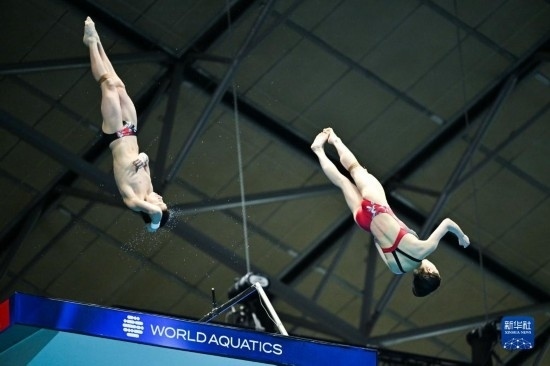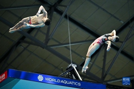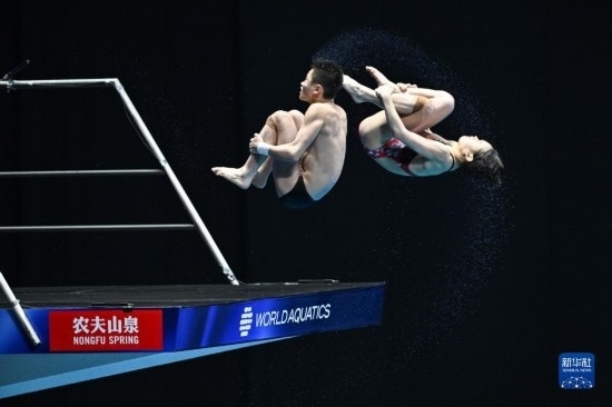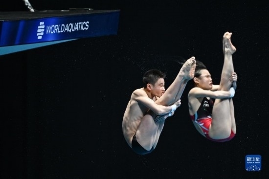 當(dāng)日,在2023年福岡世界游泳錦標(biāo)賽跳水混雙10米臺決賽中,中國組合王飛龍/張家齊以總分339.54分的成績奪得冠軍。