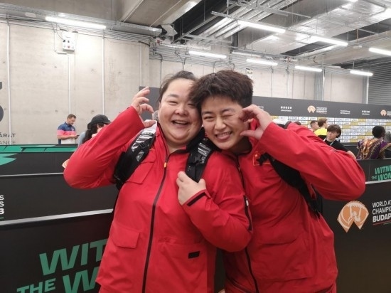 賽場內(nèi)外,年齡相差15歲的兩人臉上總是掛著同款笑容,也總是形影不離。趙杰說她總是粘著崢姐,而王崢則說出門在外總是趙杰照顧她更多。