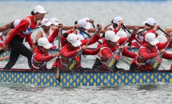 女子組決賽中,中國隊出發(fā)后便處于領(lǐng)先,并一直將優(yōu)勢保持到最后,包攬本屆亞運(yùn)會龍舟女子組比賽3枚金牌。印度尼西亞隊和韓國隊分獲銀牌和銅牌。