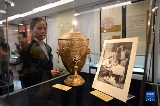 10月17日,觀眾參觀展出的俄羅斯鍍銀茶炊。