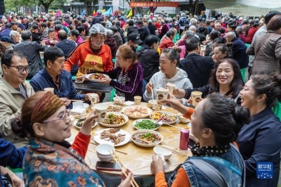 重陽節(jié)前夕,重慶市九龍坡區(qū)華巖鎮(zhèn)石龍社區(qū)開展“九九重陽節(jié) 濃濃敬老情”主題活動。600余位年滿60歲以上的社區(qū)老人共享“長壽宴”,在歡聲笑語中迎接即將到來的重陽節(jié)。