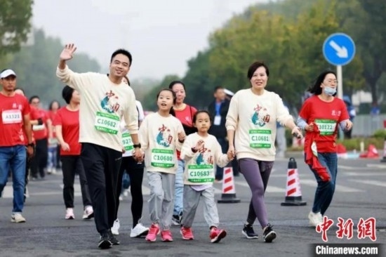 馬鞍山半程馬拉松比賽開設(shè)家庭親子跑項(xiàng)目。張強(qiáng) 攝