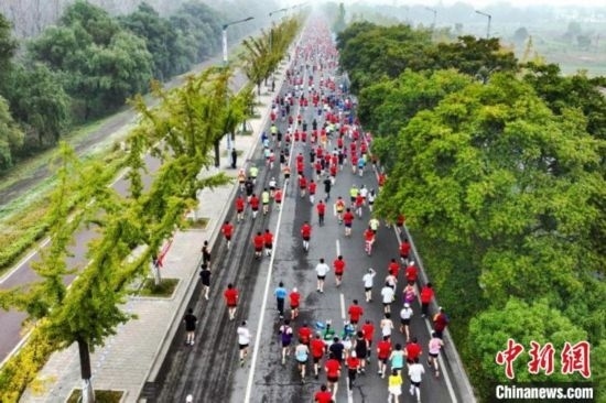 馬鞍山半程馬拉松比賽鳴槍開跑。(無人機(jī)照片)張強(qiáng) 攝