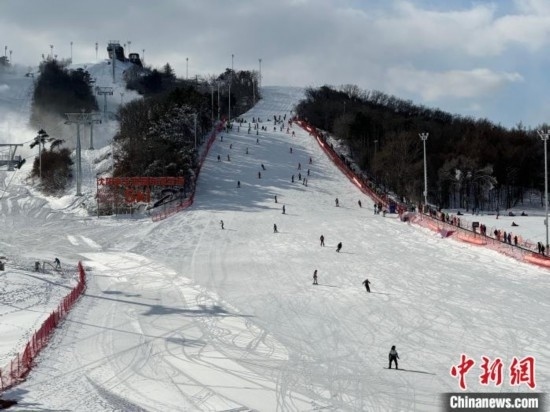 來自各地的游客在東北亞國際滑雪場體驗滑雪。記者韓宏攝