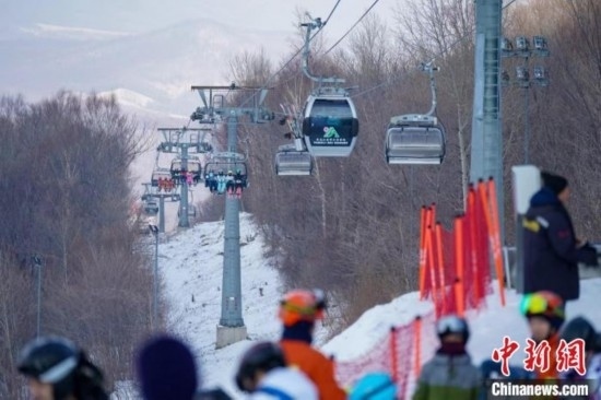 滑雪運(yùn)動(dòng)員乘坐纜車上山滑雪 趙宇航 攝