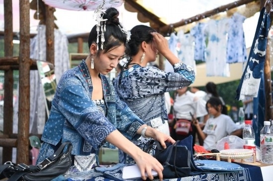 榕江縣古州文化旅游投資開發(fā)(集團(tuán))有限責(zé)任公司總經(jīng)理孫國秀說,“村超”的火爆帶火了相關(guān)產(chǎn)業(yè)?!皟H全縣開發(fā)的藍(lán)染‘村超’文創(chuàng)產(chǎn)品就有200多款,包括T恤、布袋、球隊隊標(biāo)等?!?/p>