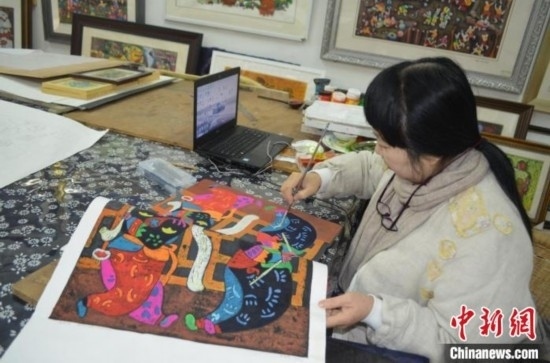 在重慶市綦江區(qū)農民版畫院,李成芝正在專注地創(chuàng)作一幅作品,她先用鉛筆在畫紙上勾出草稿,再用涂料給草稿上色,然后根據草稿在木板上雕刻出圖案,涂上顏料,最后把紙壓在板子上,拓印成畫。一筆筆、一步步,專注而細致。