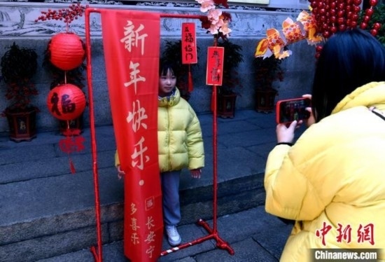 記者見,該民俗博物館還新增了多處新春打卡點,并準備了拍照道具,供人們合影留念。數(shù)字裝置也是館內的熱門打卡點,許多小朋友在裝置前盡情體驗3D漢服變裝秀,感受科技與傳統(tǒng)的相融合。