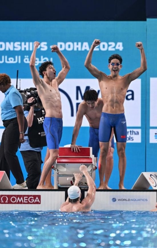 11日,中國(guó)農(nóng)歷甲辰龍年大年初二,多哈世界游泳錦標(biāo)賽游泳項(xiàng)目第一個(gè)比賽日,潘展樂和隊(duì)友季新杰、張展碩、王浩宇在男子4×100米自由泳接力決賽中以3分11秒08贏得金牌,為中國(guó)男子游泳創(chuàng)造歷史!中國(guó)游泳此前還從未獲得過(guò)世錦賽或者奧運(yùn)會(huì)的男子接力冠軍。