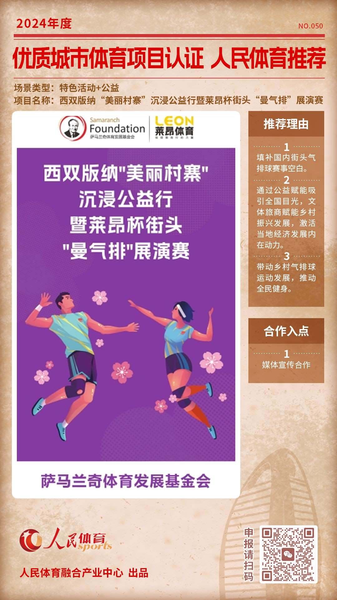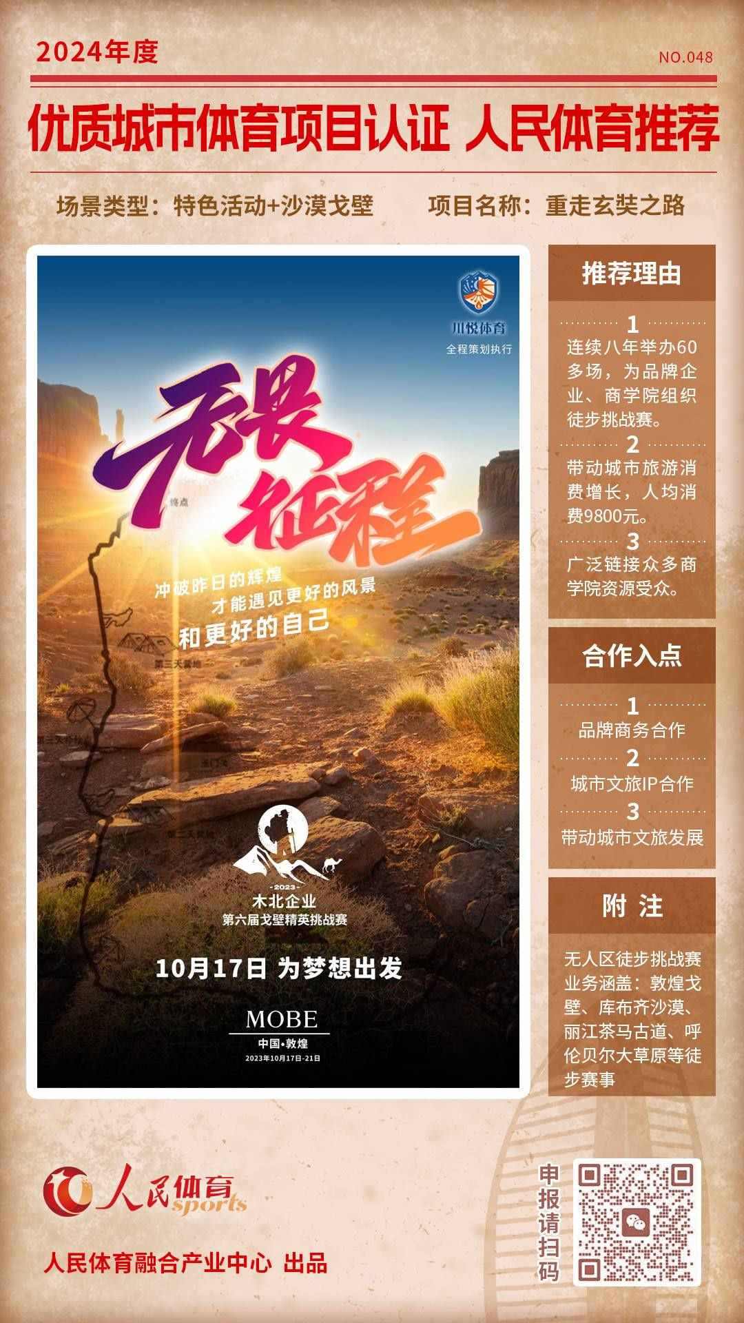 人民體育發(fā)起的“優(yōu)質(zhì)體育賽事及活動認(rèn)證推薦計劃”,2024年04月推出第六批,共9個推薦項目。
