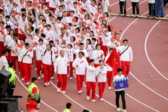 開幕式上,中國代表團(tuán)第13個入場,旗手由乒乓球隊男子運(yùn)動員李天陽和跆拳道隊女子運(yùn)動員酈雨琪擔(dān)任。本屆運(yùn)動會中國代表團(tuán)共派出全國22個省區(qū)市的103名運(yùn)動員參賽,其中女子運(yùn)動員55人,男子運(yùn)動員48人,將參加田徑、游泳、三對三籃球、沙灘排球、網(wǎng)球、跆拳道、國際象棋等17個大項(xiàng)、124個小項(xiàng)的比賽。