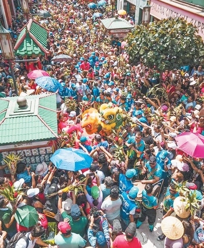 如今,舞龍舞獅已融入秘魯社會(huì)。每年中國春節(jié),醒獅團(tuán)都會(huì)在唐人街游行表演,喜慶的鑼鼓振奮人心,龍獅獻(xiàn)瑞帶來歡樂祥和。秘魯民眾走上街頭,手持他們稱為“中國竹子”的轉(zhuǎn)運(yùn)竹,簇?fù)碓邶埅{周圍,爭(zhēng)相看一看、摸一摸,希望沾上喜氣與幸運(yùn)——這已成為秘魯一大民俗。在秘魯人的婚禮上,舞獅已成為一種時(shí)尚。