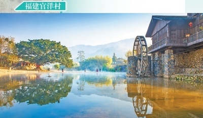 福建漳州市南靖縣官洋村,是土樓文化、閩南文化、客家文化的“大觀園”。圖為官洋村的土樓與古榕樹(shù)、溪水相得益彰。施 鈺 馮木波攝影報(bào)道