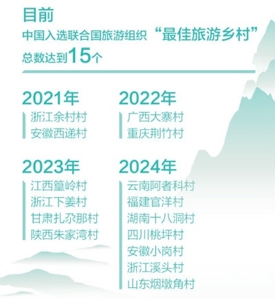 北京時(shí)間11月15日,在哥倫比亞卡塔赫納舉行的聯(lián)合國(guó)旅游組織執(zhí)行委員會(huì)第122次會(huì)議上,公布了2024年“最佳旅游鄉(xiāng)村”名單。我國(guó)申報(bào)的云南阿者科村、福建官洋村、湖南十八洞村、四川桃坪村、安徽小崗村、浙江溪頭村、山東煙墩角村7個(gè)鄉(xiāng)村入選,是本屆入選鄉(xiāng)村數(shù)量最多的國(guó)家。至此,我國(guó)的“最佳旅游鄉(xiāng)村”總數(shù)達(dá)到15個(gè),居世界第一。